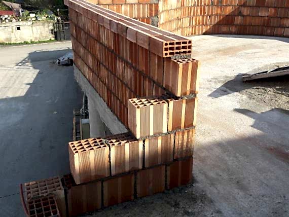 3- Tuğla sıraları yatay olmalı, bu durum her bir metre yükselmede kontrol edilmelidir. Kiriş alt düzeylerinde özellikle dikkatli olunarak, buralara tüm duvar boyunca standart ya da eşit yükseklikte kesilmiş tuğla işlenmesine ve bu son parçaların kiriş altına iyice harç doldurularak sıkıştırılmasına özen gösterilmelidir. /Daha iyisi son 15- 20 cm. nin tuğlaları, 30-45 derece konarak iyice sıkıştırılmalıdır).